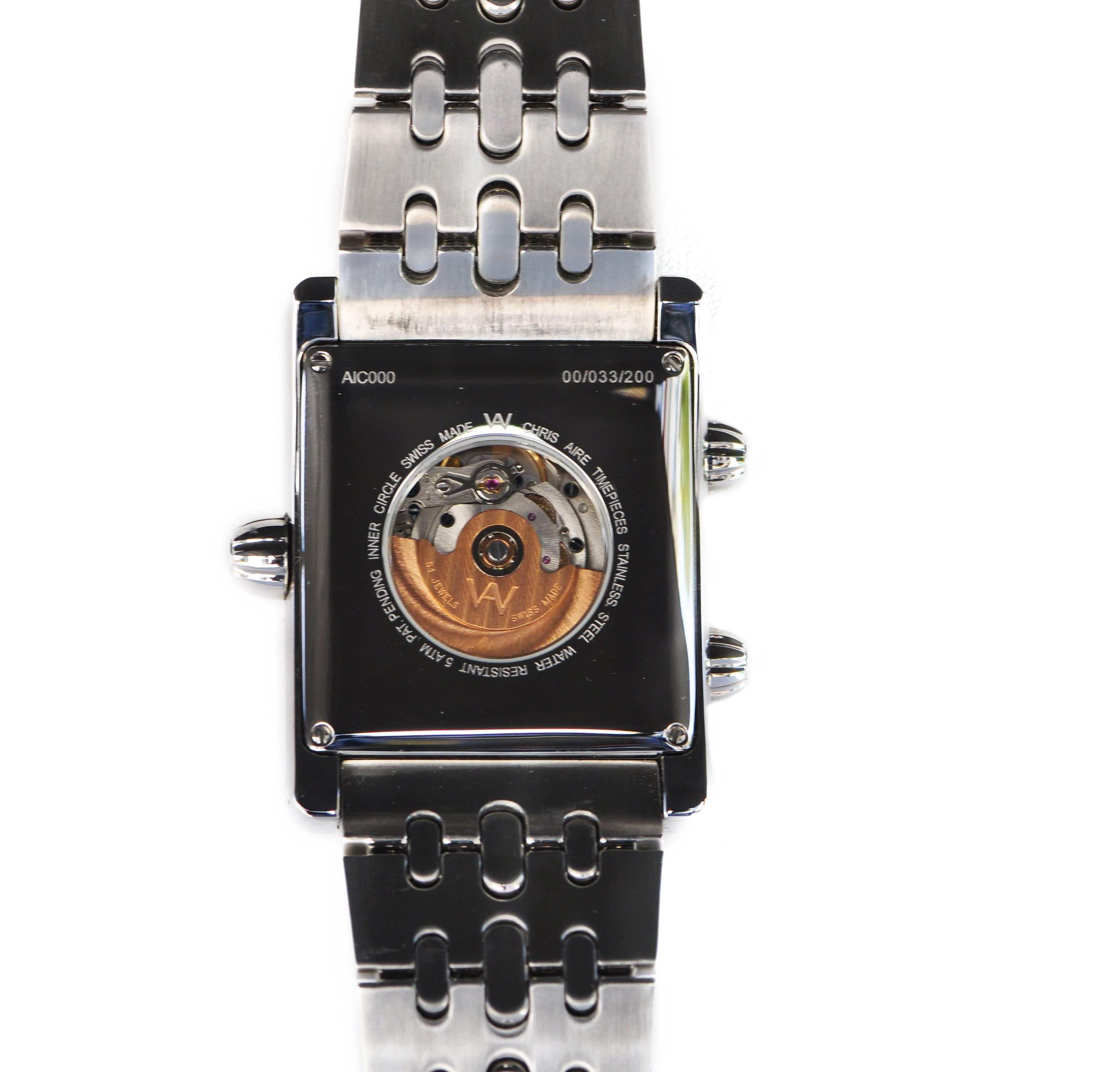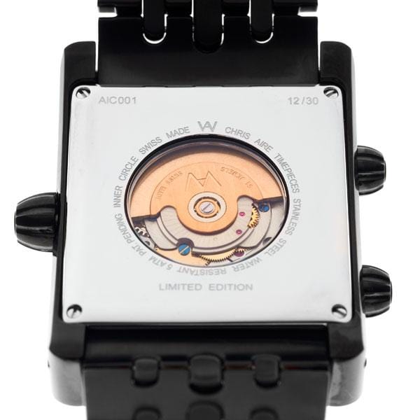 Aire Inner Circle Watch design is a combination of two concepts, our unique patented Bouclier shape, and an inner circle from which it derives its name. The movement is a Soprod base with special modifications for a Chris Aire Calibre, blazing the trail for what's next in ultimate watchmaking.