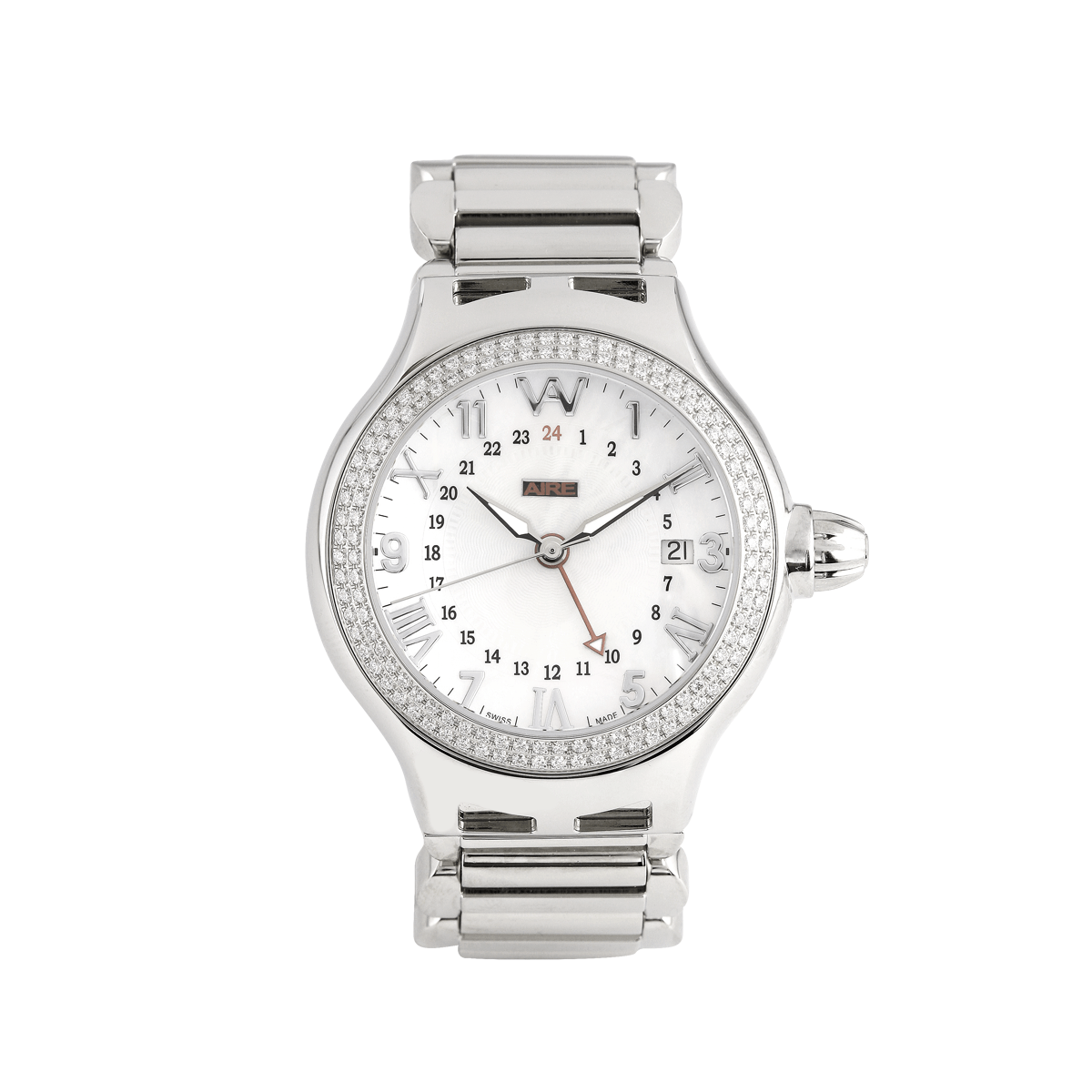 • Signature Arabic/Roman numeral markers and 12/24 Hour time indicators dial