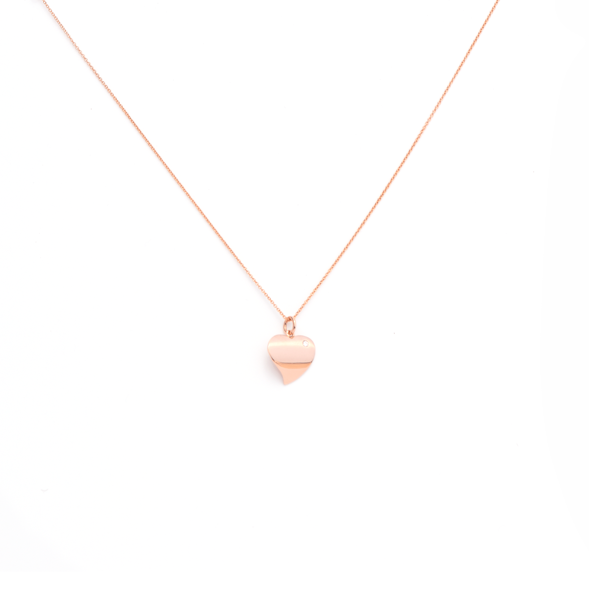 Peaceful Heart - Made in 18-karat amber hue gold with a bezel set round brilliant diamond solitaire of VS1 Clarity, E color, suspended on a 14 inch adjustable to 18 inches 18-karat amber hue gold from our Signature RED GOLD® Collection.