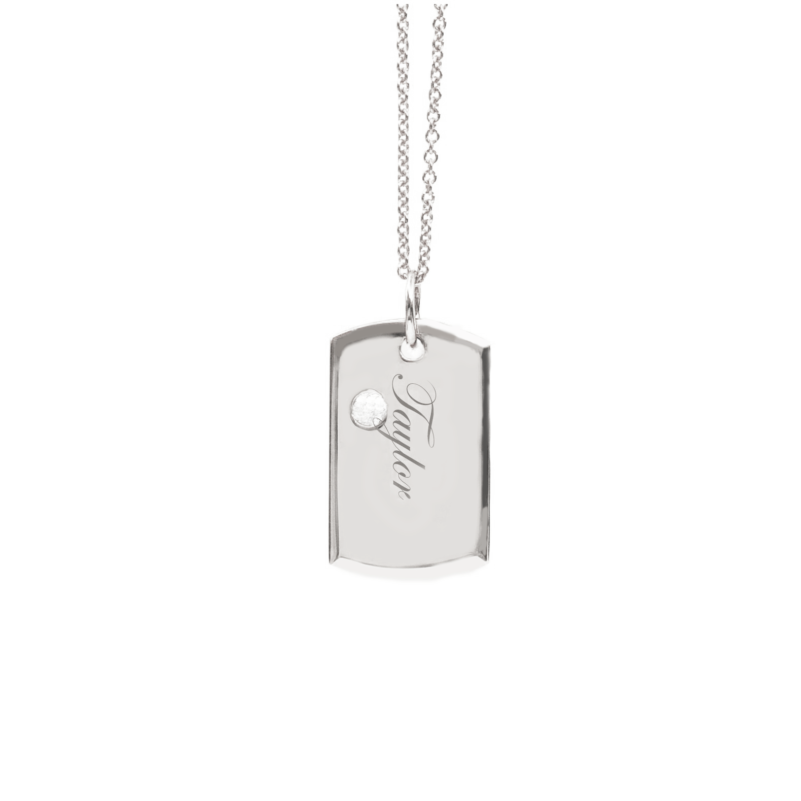 An American Classic and a client favorite, our Solid Gold Everyday Diamond Dog Tag is customizable. It is a great gift or self-purchase.