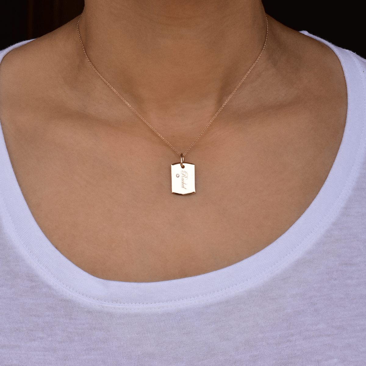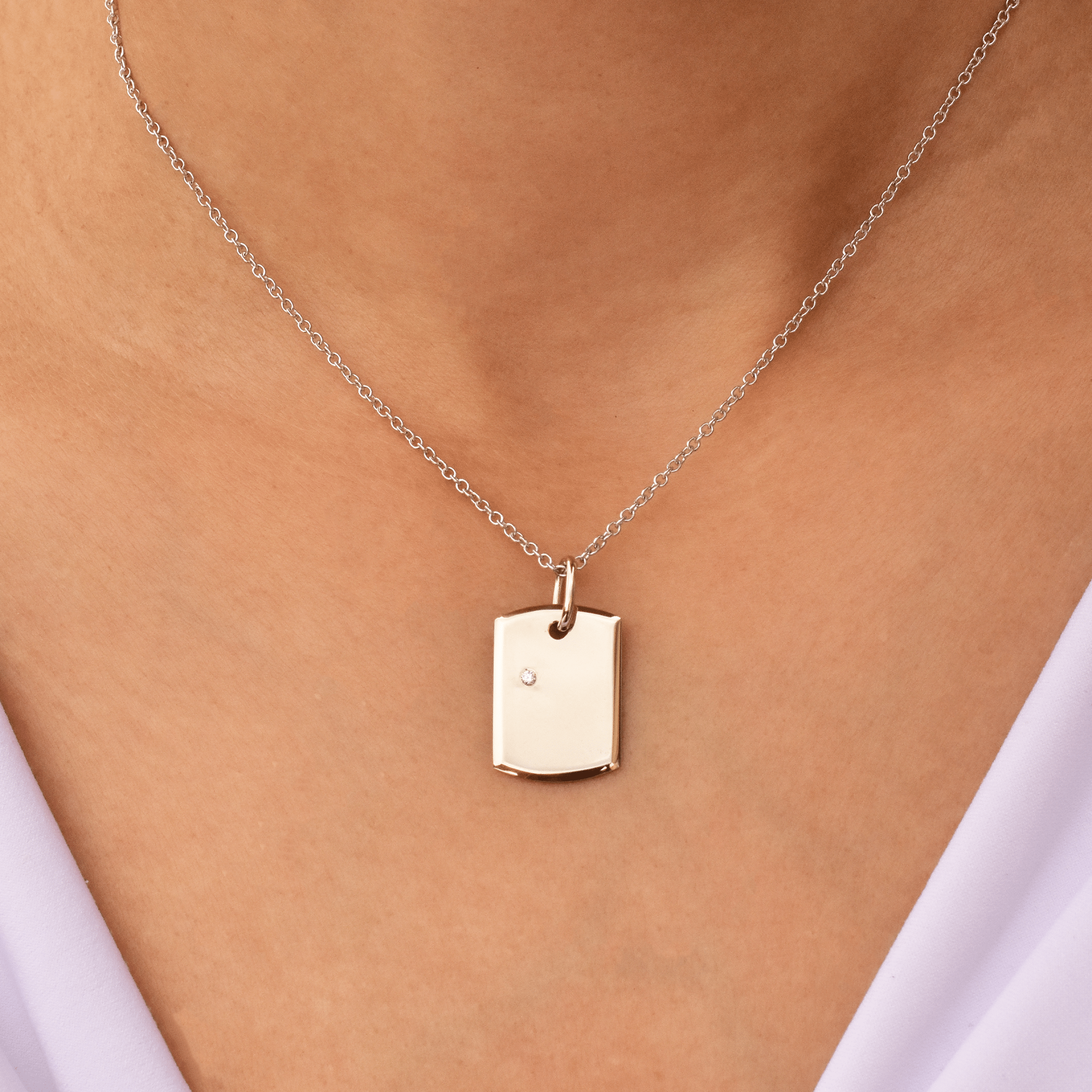 Everyday Dog Tag - 18-Karat Solid Gold & Solitaire Diamond