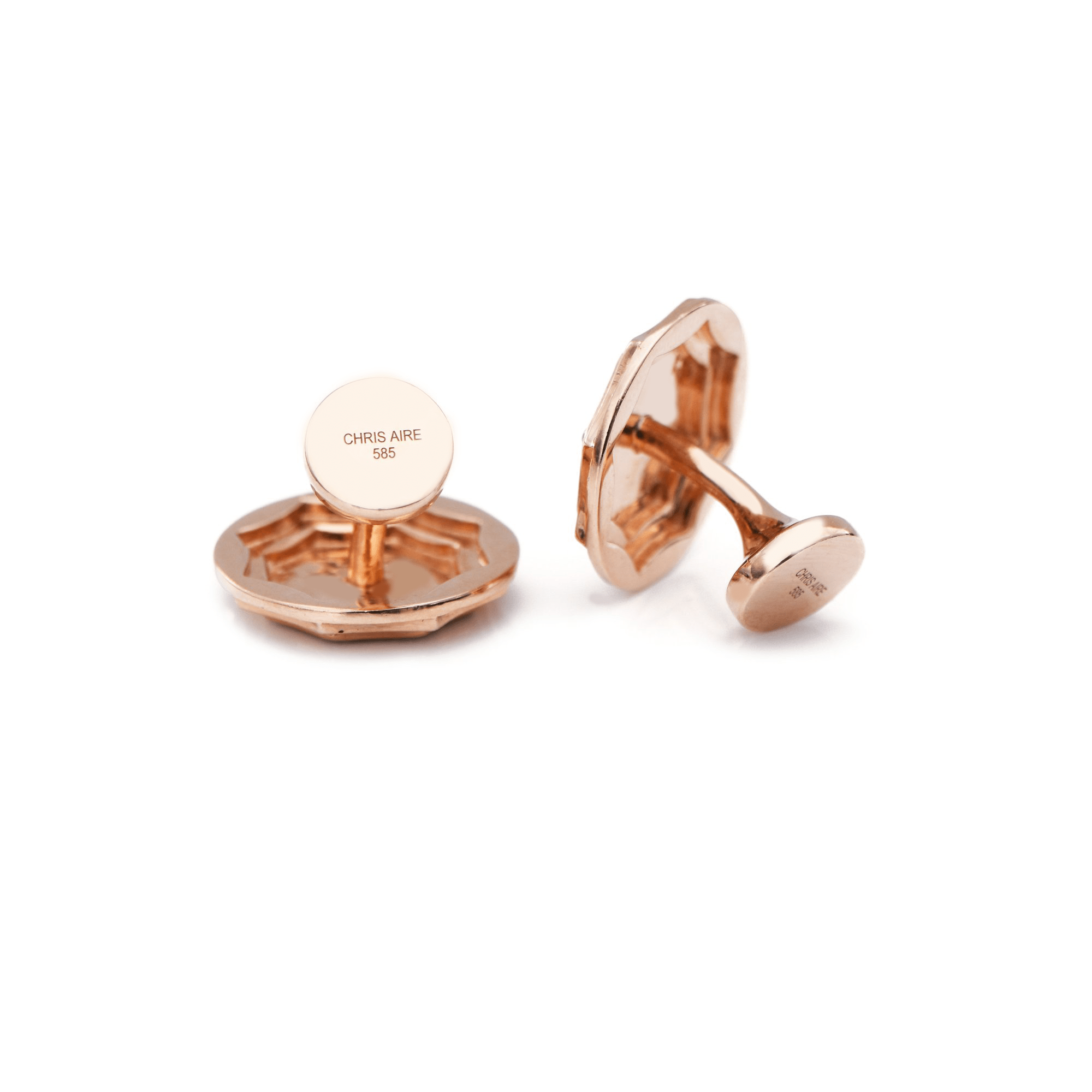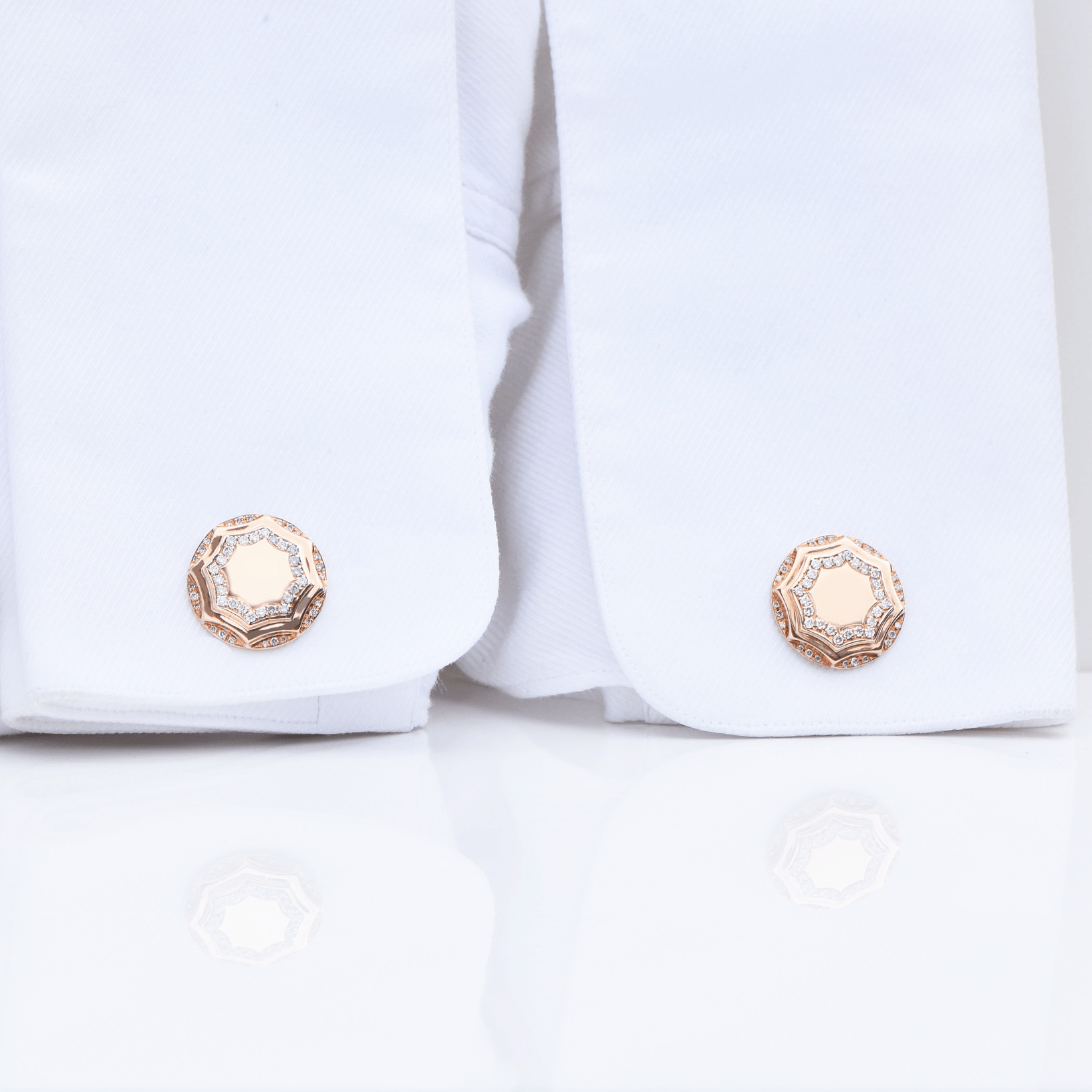 Macedonia Cufflinks is handmade in 14 karat amber hue gold with round brilliant pave set of VS clarity,  D-F colorless diamonds our Signature Red Gold® Collection.