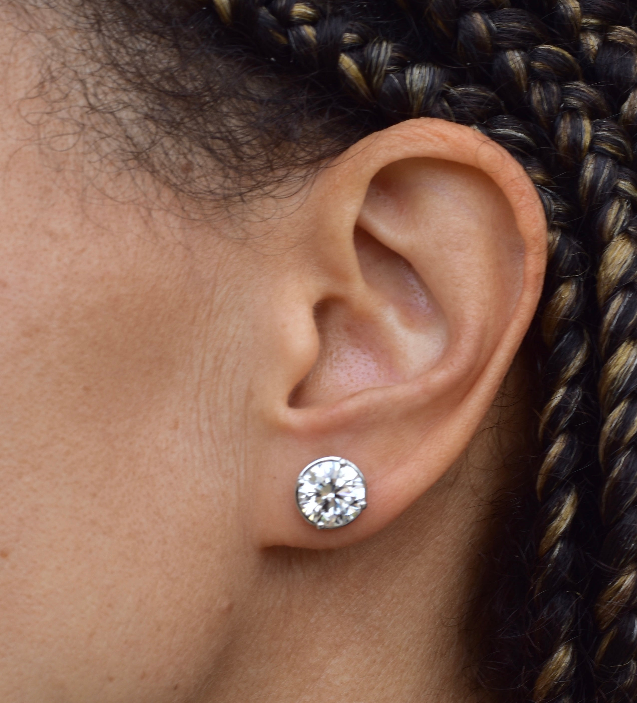 2.63 carats round brilliant diamond stud each for a total of 5.25 carats total weight set in platinum.