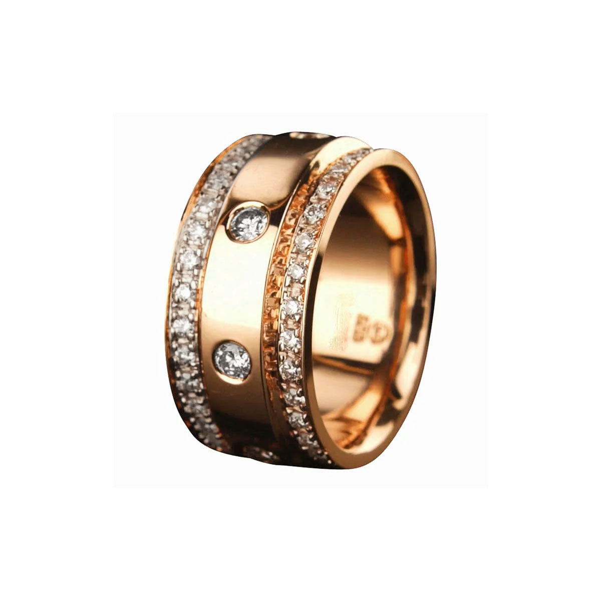 Aire Wide Band - Paparazzi is crafted in 18k amber hue gold decorated with round brilliant diamonds of VS clarity D-F colorless diamonds from our Signature RED GOLD® Collection