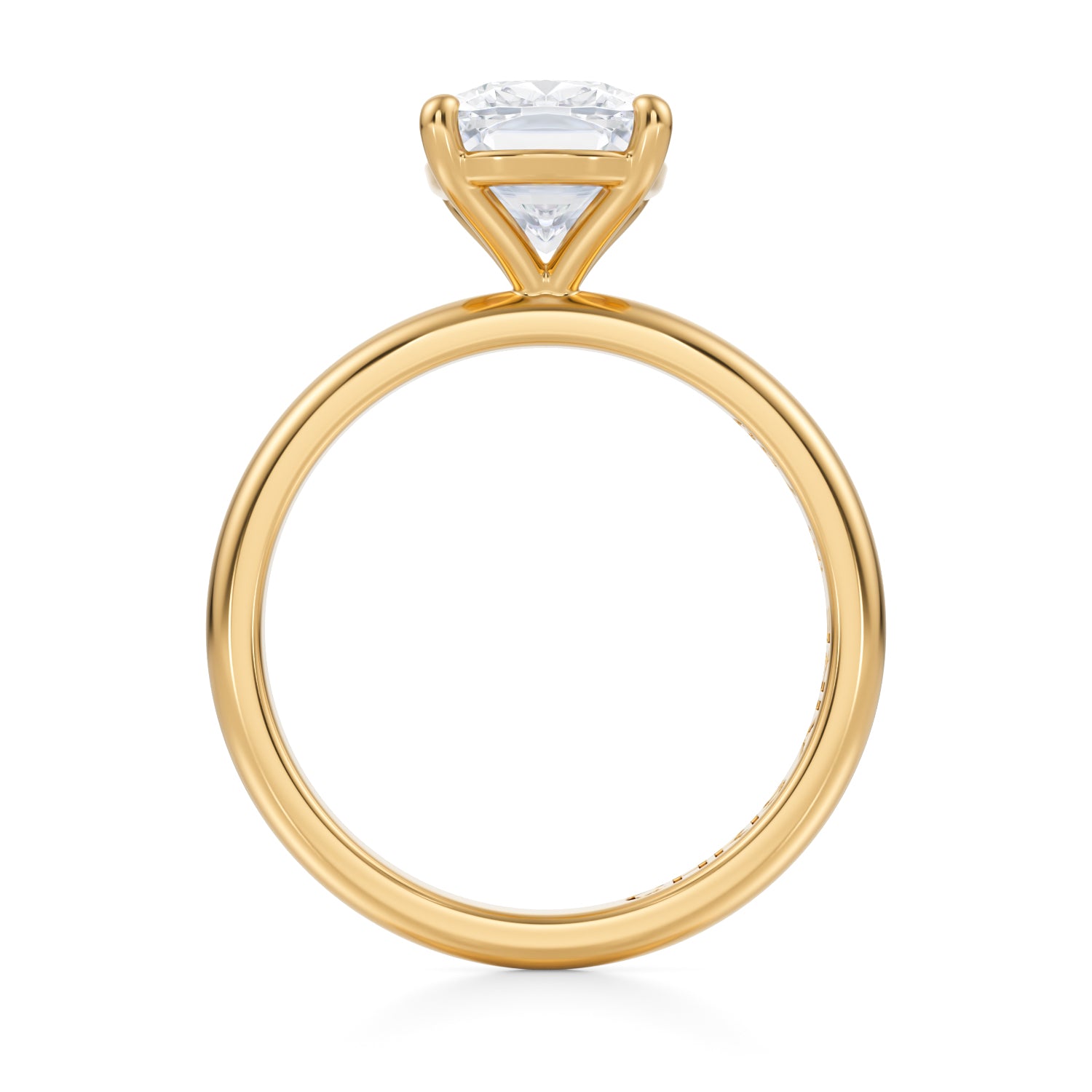 • Elegant Solitaire set in an 18-karat solid yellow gold comfort-fit thin band.