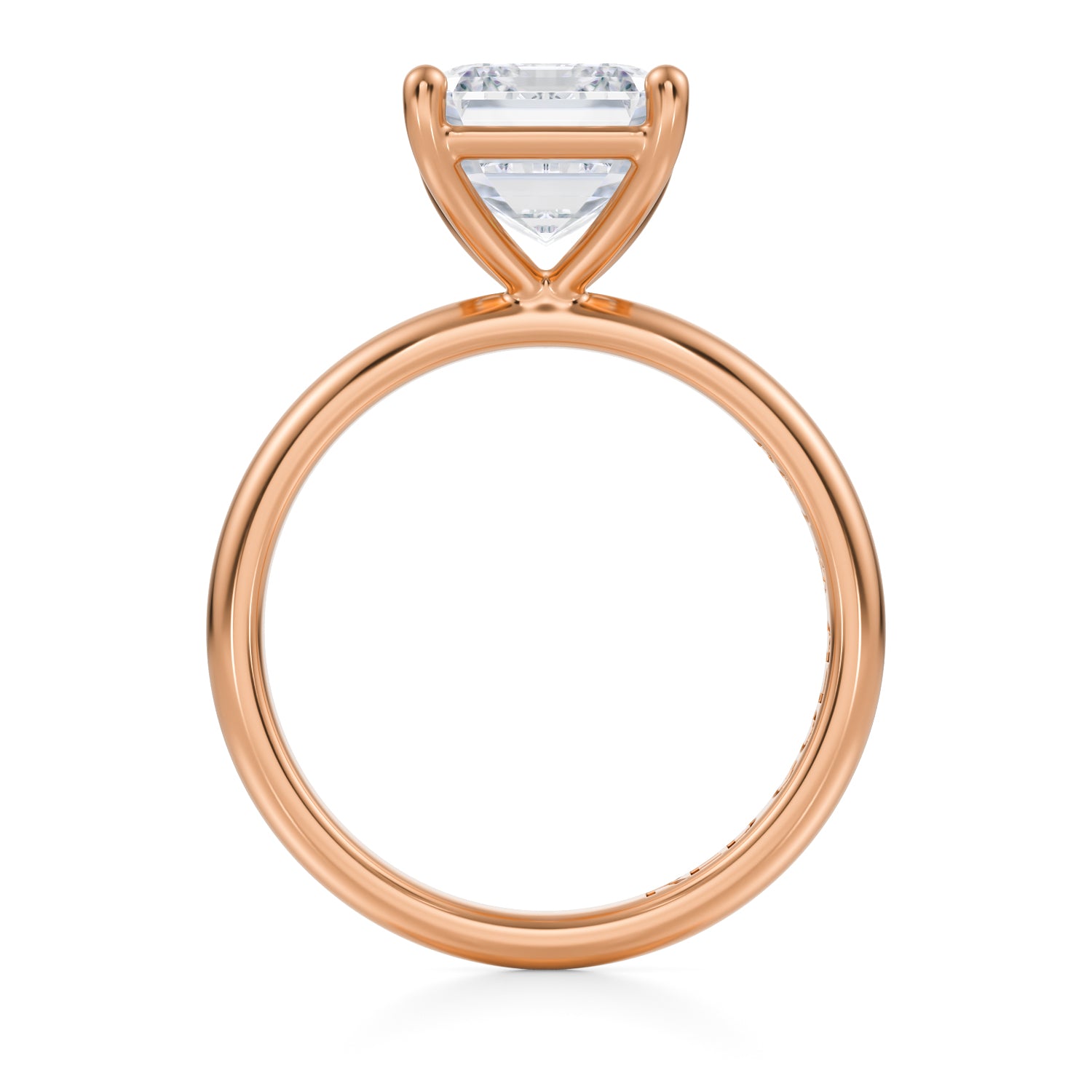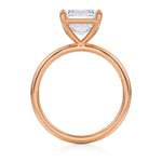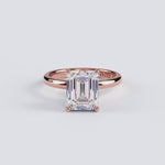 Three-Carat Emerald-Cut Brilliant Diamond Solitaire Engagement Ring set in an 18-karat solid amber-hue gold thin band featuring GIA Certified VS1 - F colorless  diamond from our Signature RED GOLD ® Collection.