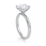 Three-Carat  Oval Brilliant Diamond Solitaire Engagement Ring set in an 18-karat solid white gold thin band featuring GIA Certified VS1 - F colorless diamond.