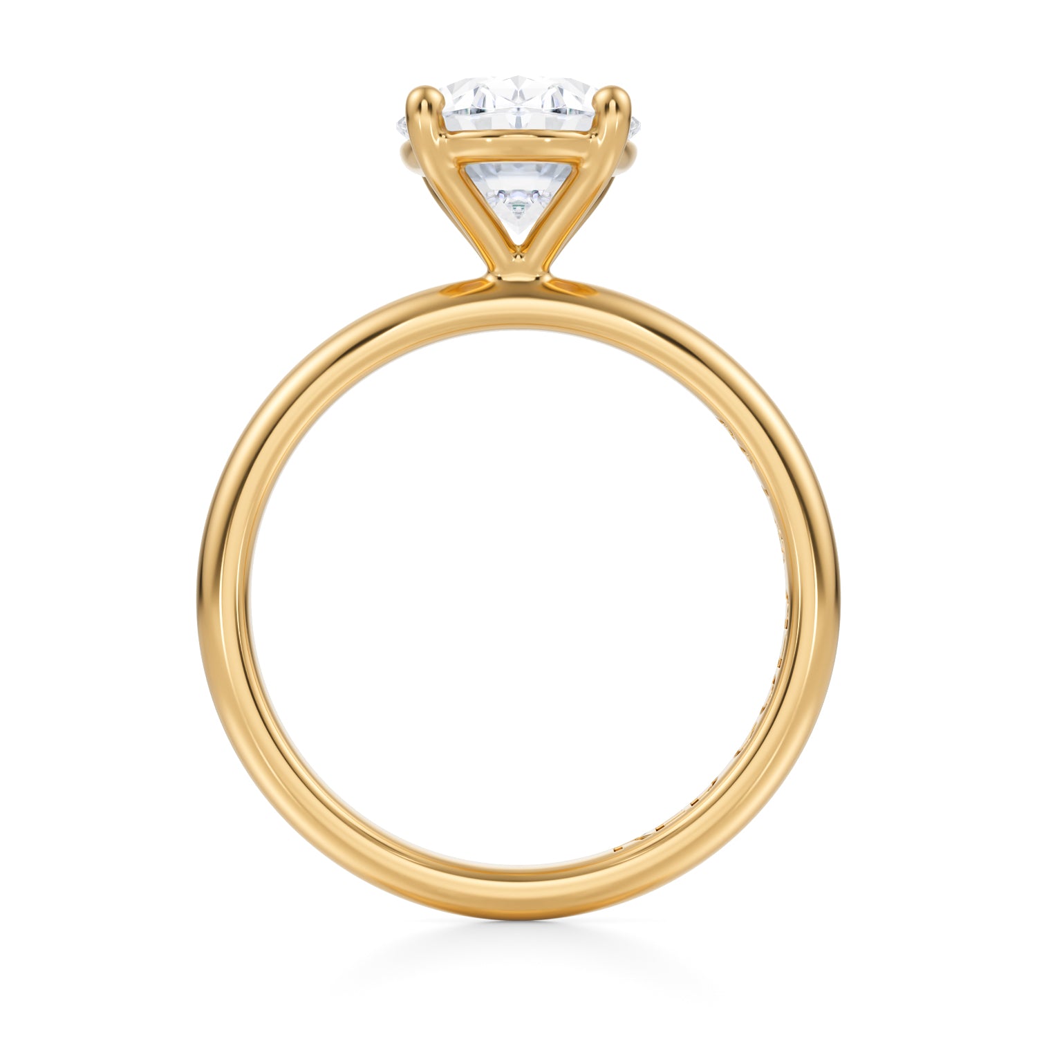 • Elegant Solitaire set in an 18-karat solid yellow gold comfort-fit thin band.