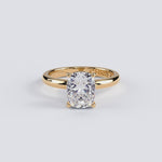 Three-Carat Oval Brilliant Diamond Solitaire Engagement Ring set in an 18-karat solid yellow gold thin band featuring GIA Certified VS1 - F colorless diamond.