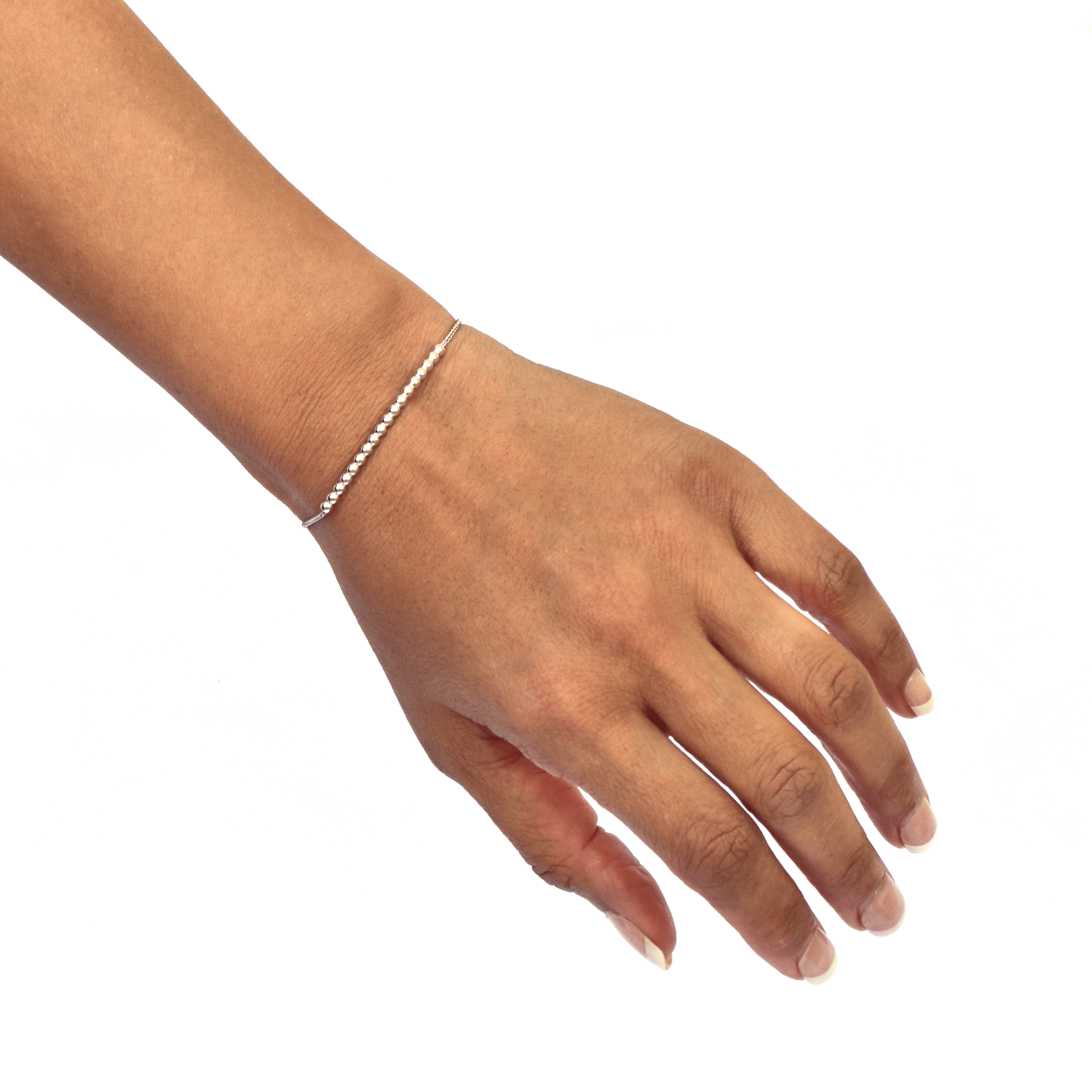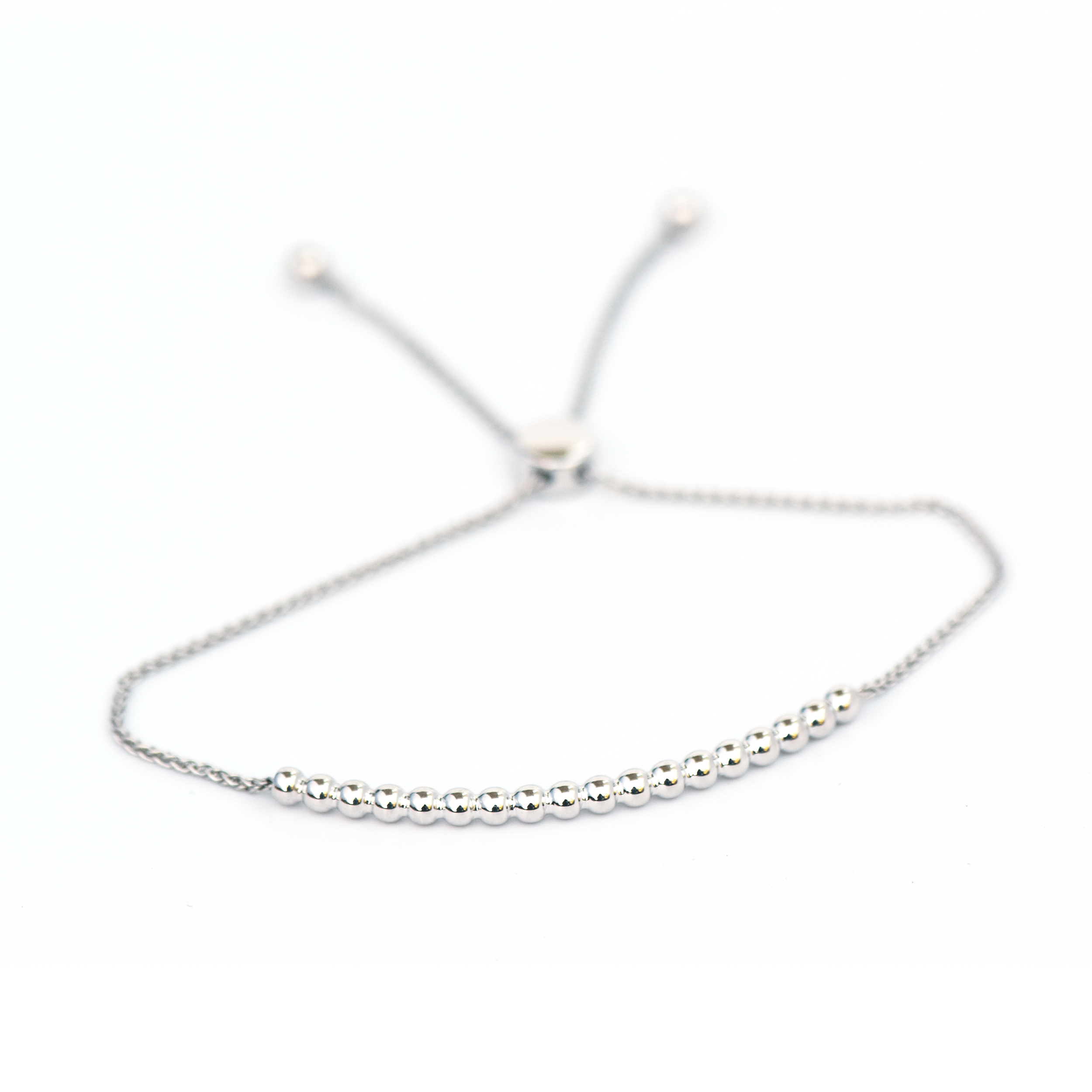 We created Aire little beaded Bracelet in 14-karat solid white gold. It is adjustable to size 9.5".
