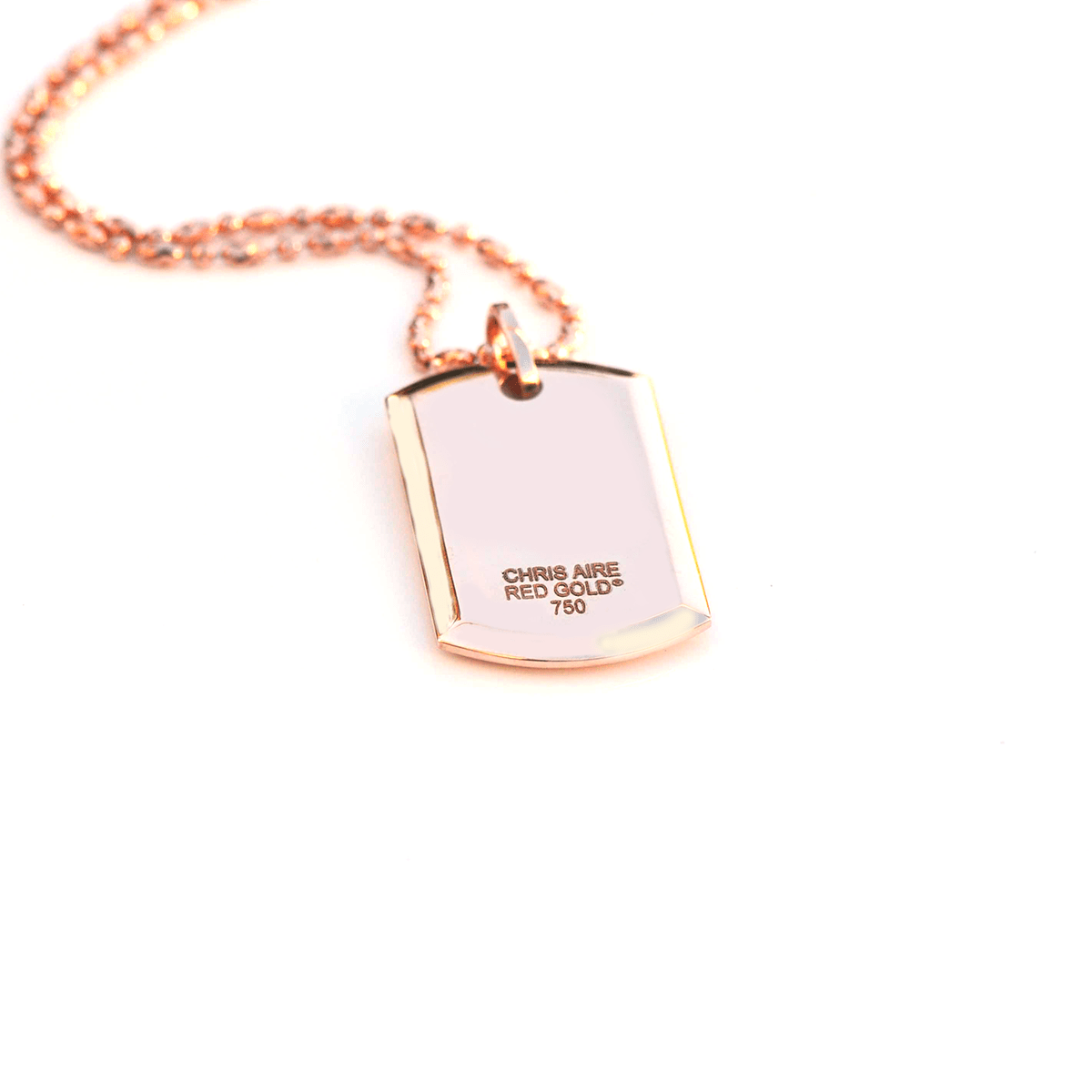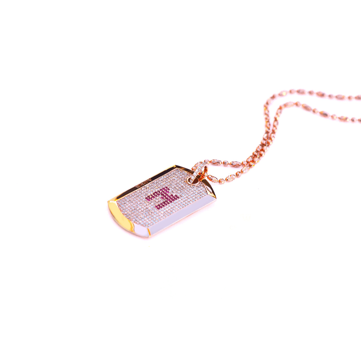 Diamonds and Gold Dog Tag - 18-Karat Amber Hue Gold Full Diamond Dog Tag with Rubies Necklace - Red Gold®