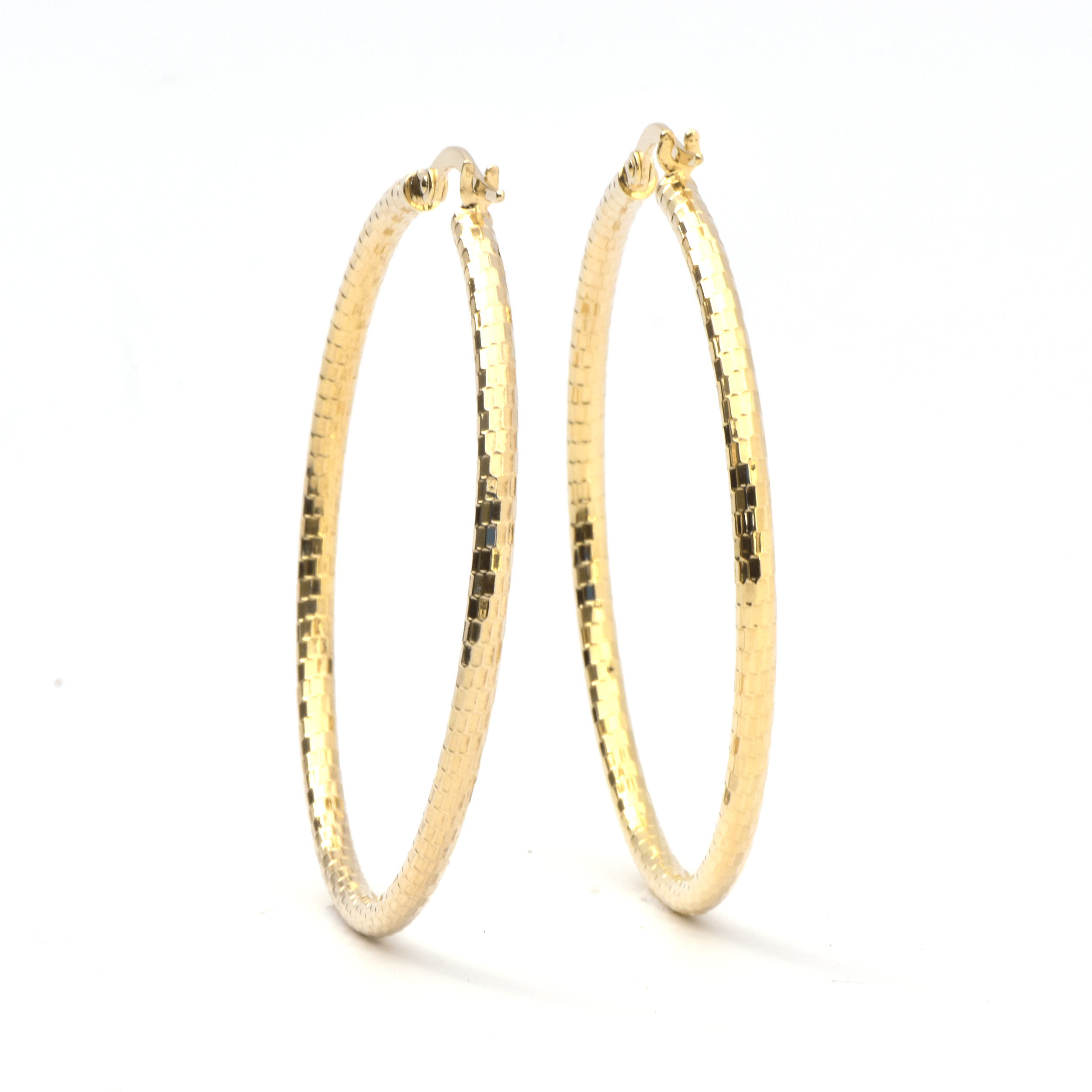 Bright Hoops: Created in 14-Karat Yellow Gold, Lightweight Hoops are diamond cut for the diamond look with the diamonds. They are extra light and incredibly comfortable to wear.