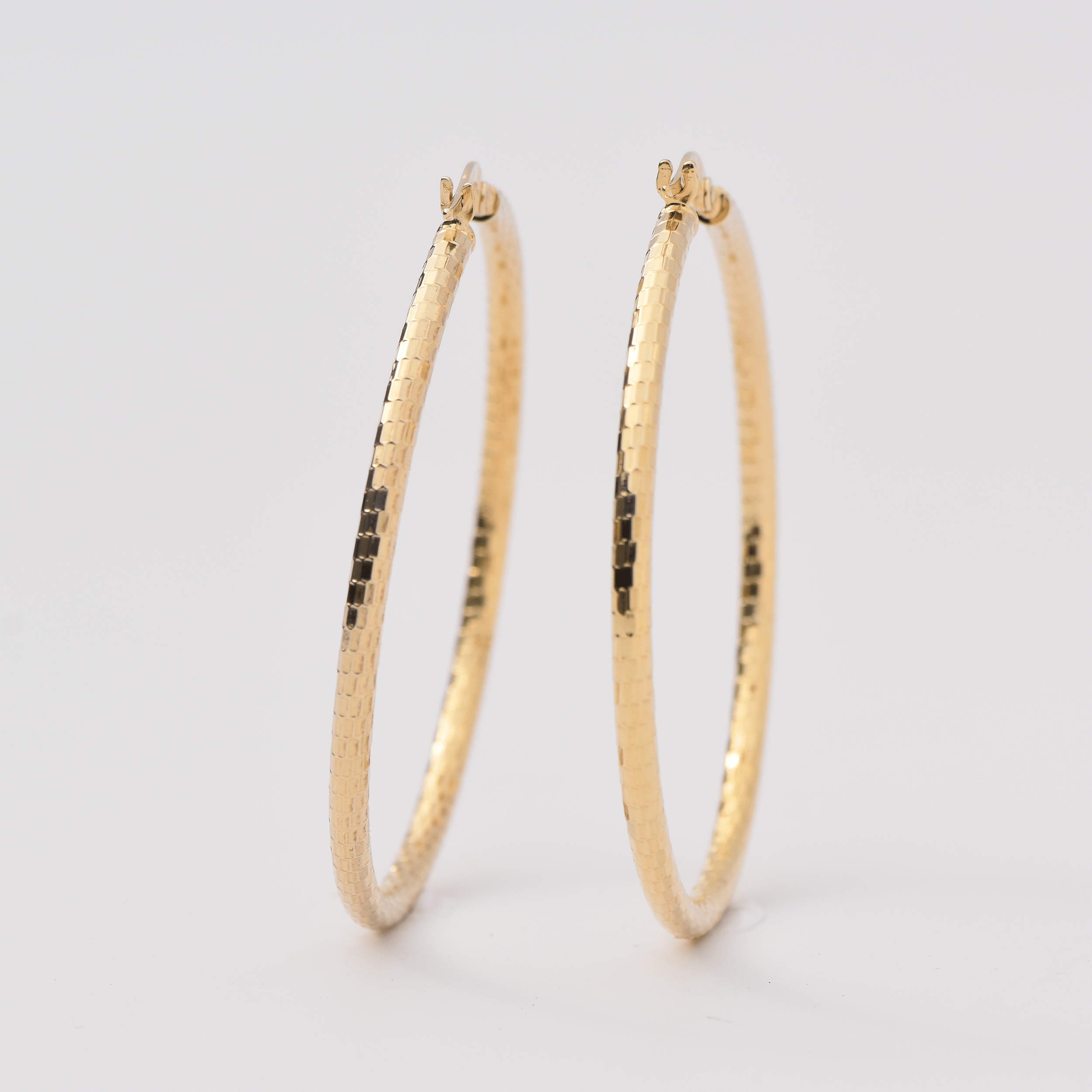 Yellow Gold Hoop Earrings - 14-Karat Yellow Gold, Lightweight diamond Cut Hoops: Bright Hoops