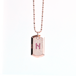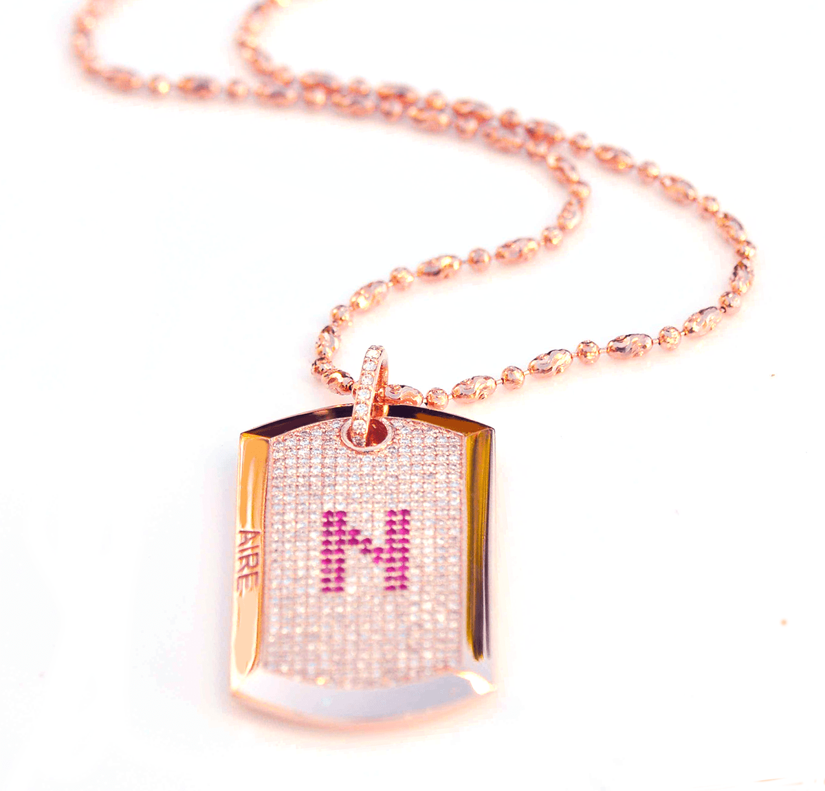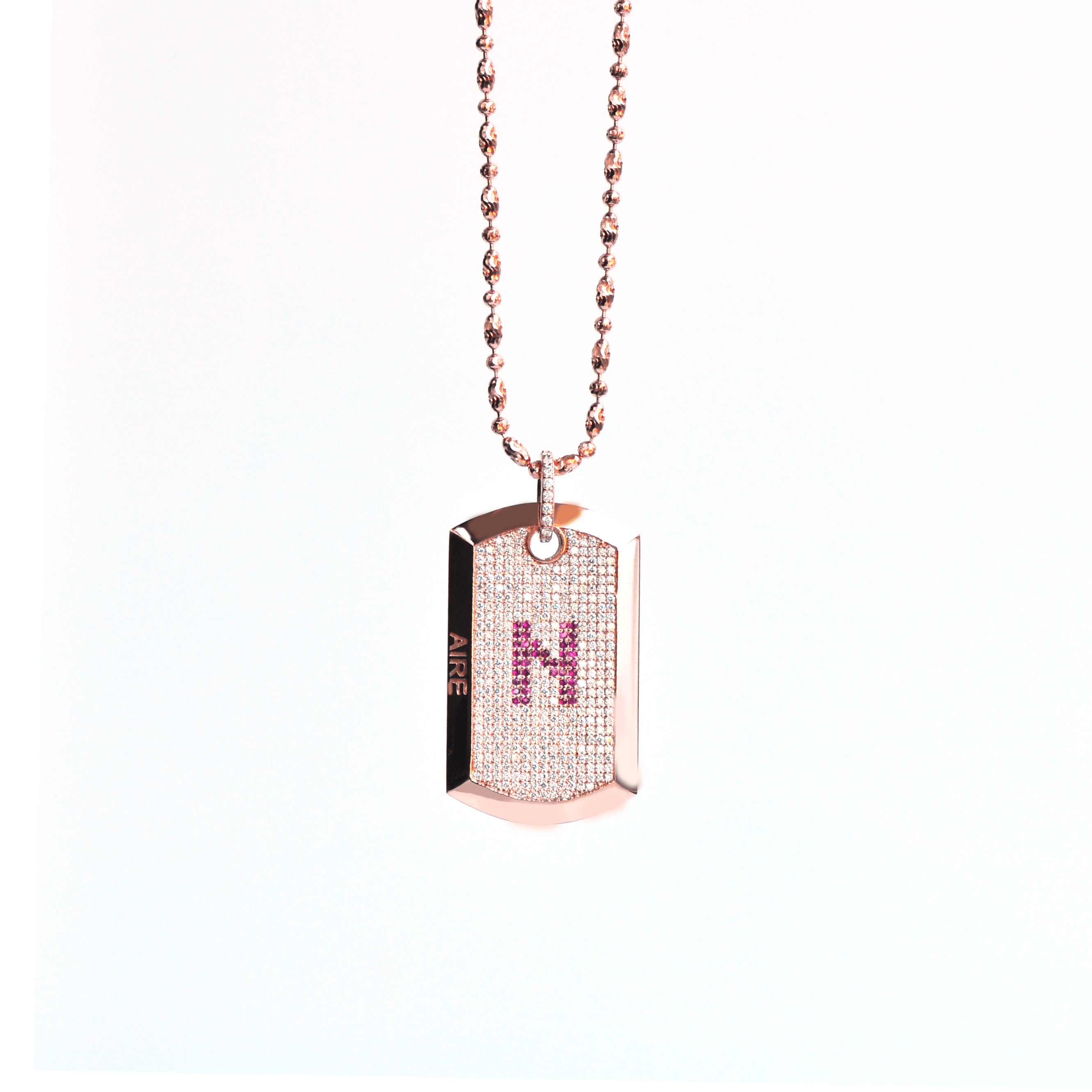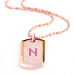 Aire Full Pavé Diamond Dog Tag - Handmade in 18-karat amber hue gold with initial set in rubies from our Signature Red Gold ® Collection. The "N" initial is changeable to any letter of your choice and the back is customizable with up to 10 characters of text.