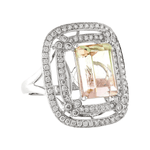 Aire cocktail ring - Princess rIng is crafted in 18 karat white gold elegantly featuring a bi-color tourmaline accented with two rows of round brilliant VS clarity D-F colorless diamonds.