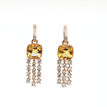 Vibrant, sophisticated, and alluring, Chris Aire Luxury Dangles is made in 18K amber hue gold, featuring two cushion-cut yellow aquamarines of 8.84 carats 38 round-brilliant diamonds of 2.85 carats from our Signature Red Gold® Collection.