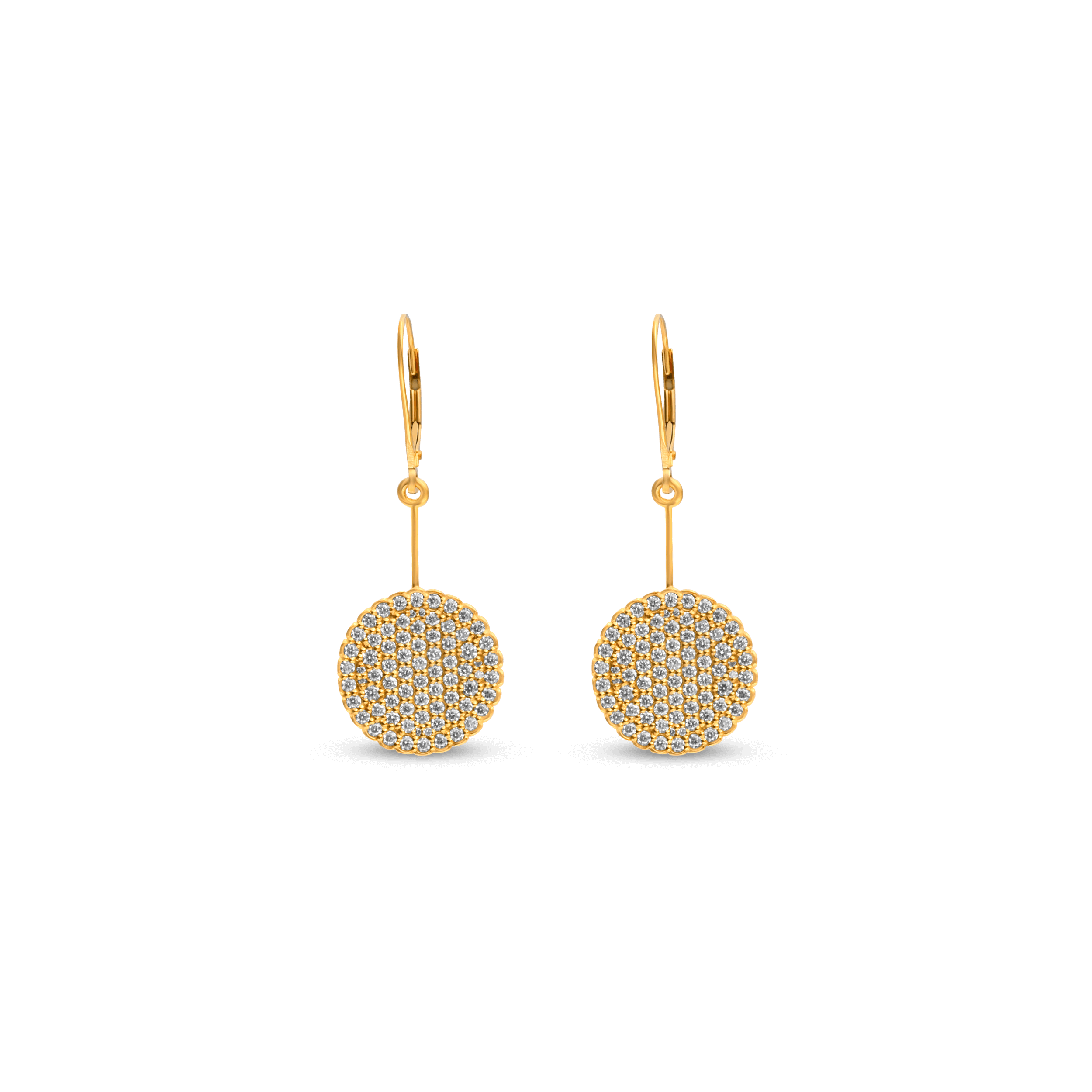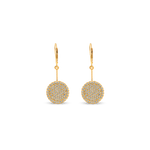 This fun pair of lightweight earrings are made in 18-karat solid yellow gold and encrusted to sparkle with micro- pave set moissanite lab-grown gemstone in an 18-karat solid yellow gold setting. 2.68ct
