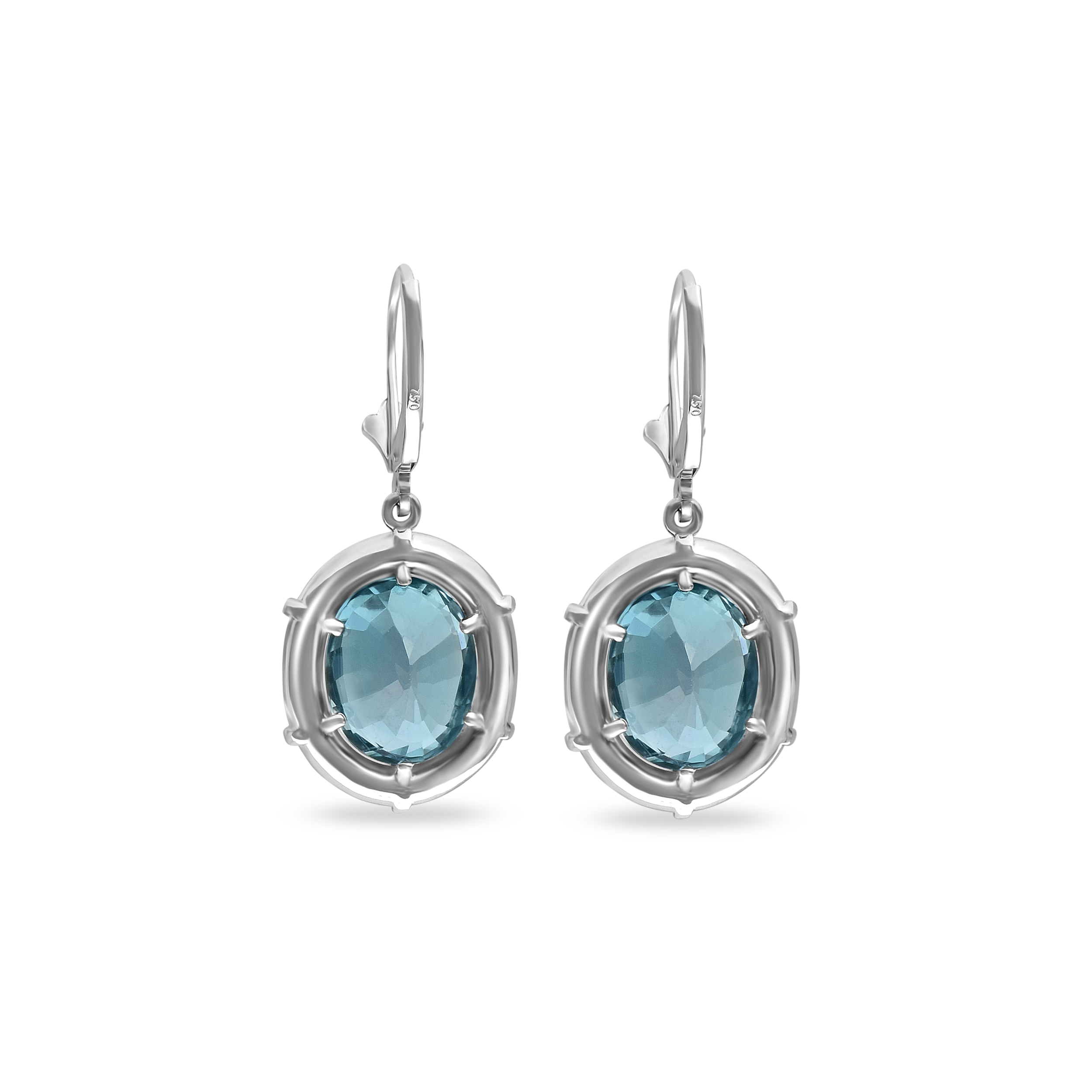 Earrings - 18-karat Solid White Gold Diamonds Blue Zircon Earrings
