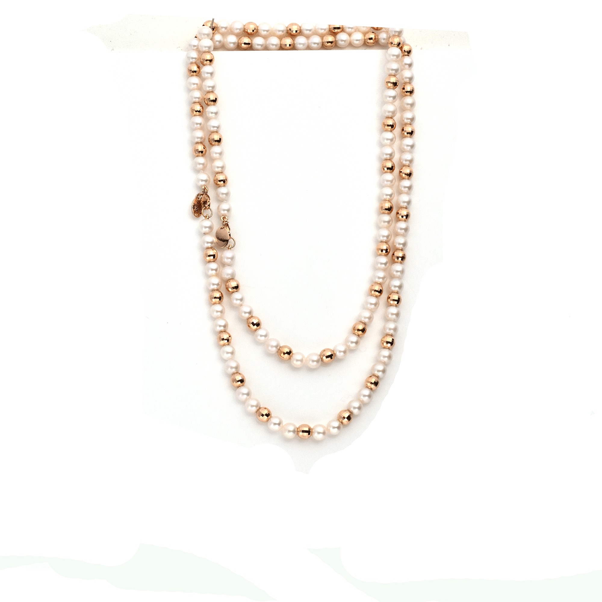 Pearlngold is a combination of 18-karat diamond-cut amber hue gold beads and flawless cultured pearls strung together in perfect harmony. Elegant, posh, and versatile, from our Signature Red Gold® Collection.