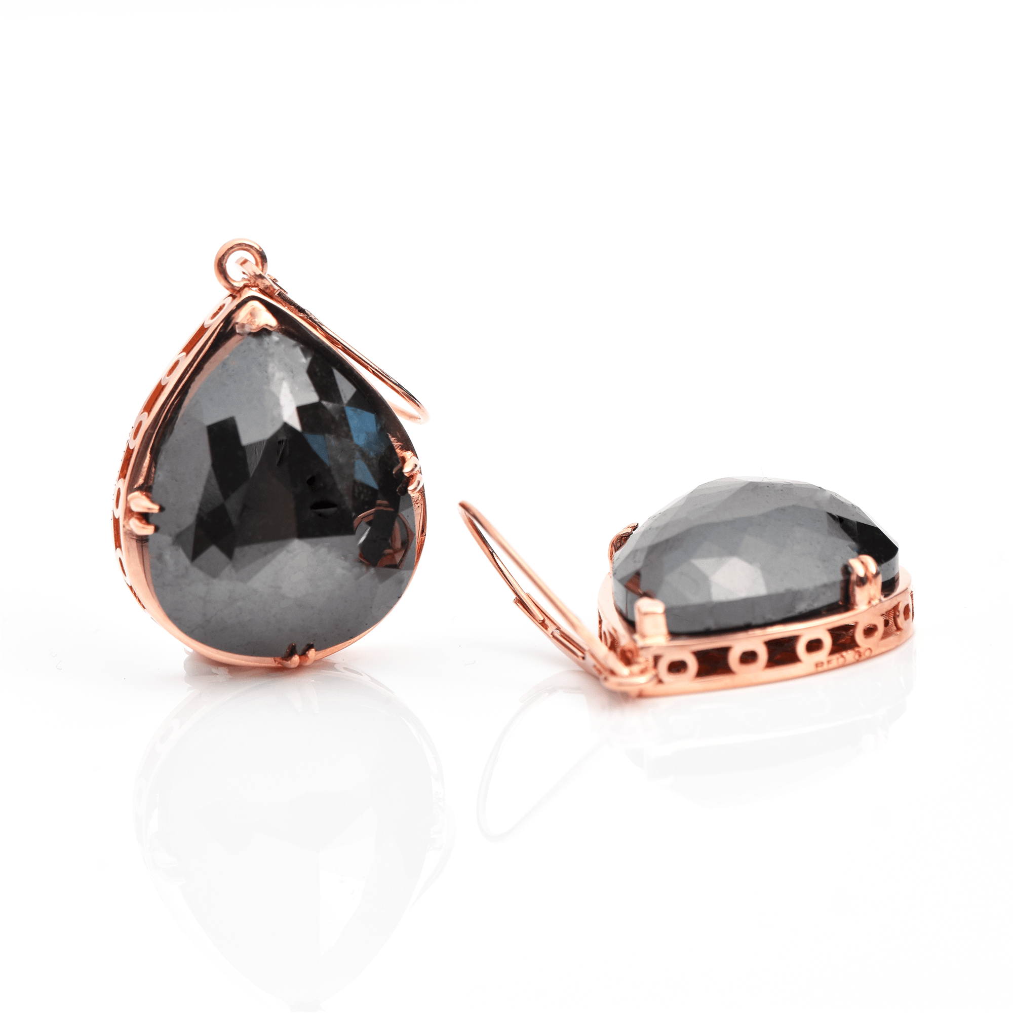• Rare matching pair of 45.63 black pear-shaped diamonds