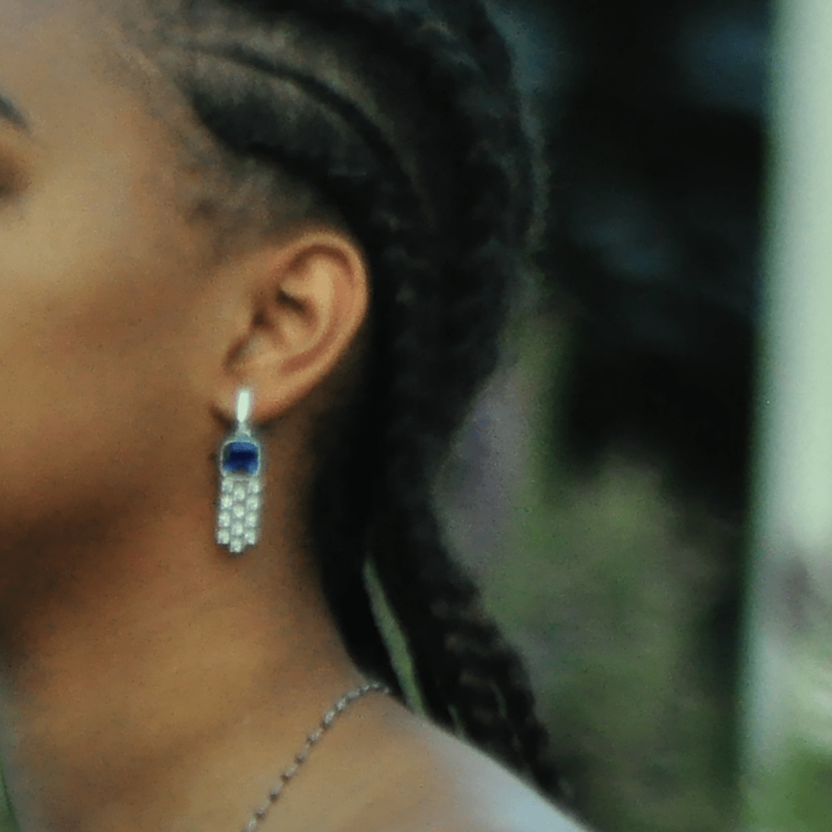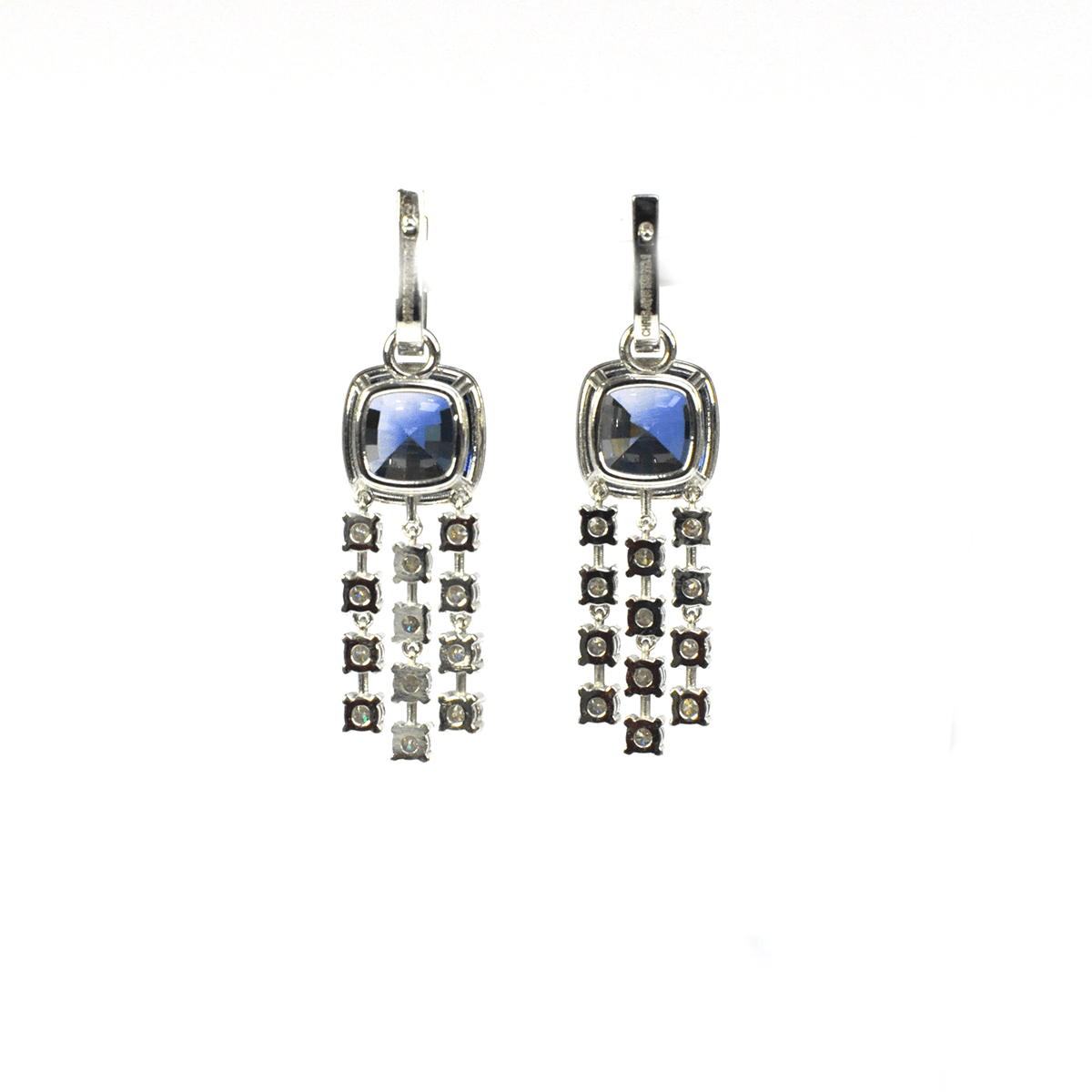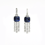 Luxury Dangles - 18 Karat White Gold Blue Sapphire & Diamond Earrings
