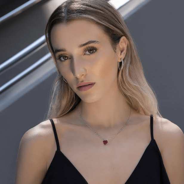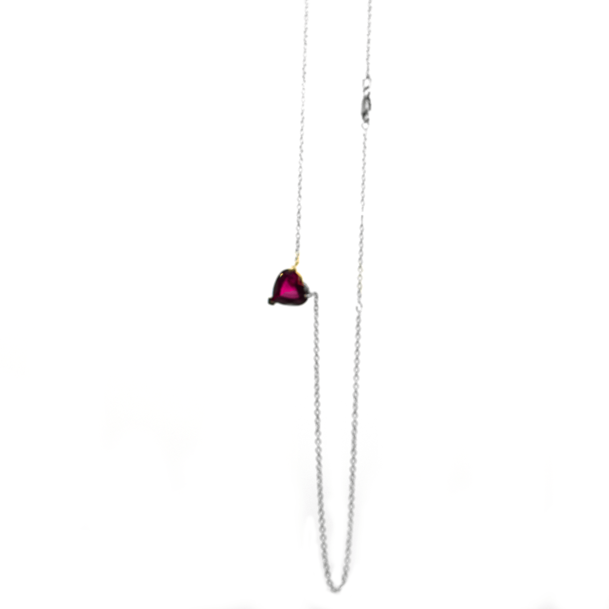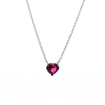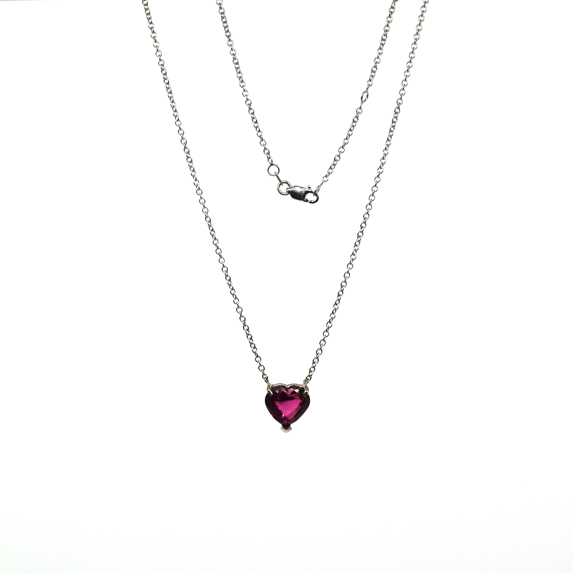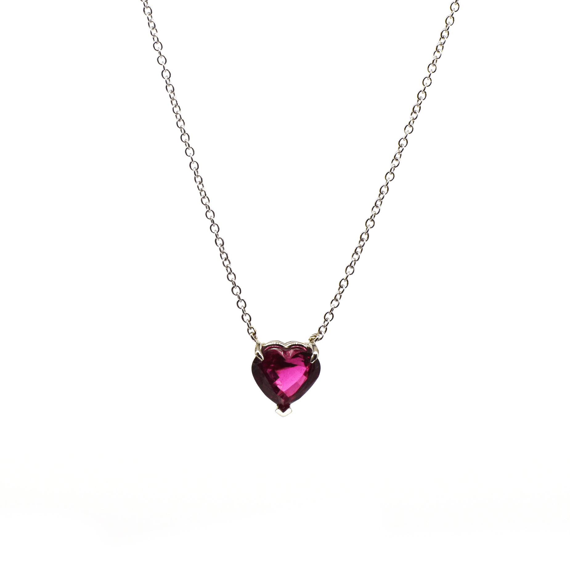Highly Loved Necklace is made in 18 karat white gold featuring beautiful intense color 4.00 carats heart-shaped AAAA+ rubellite gemstone in four prongs basket set and hung on a 16" 18 karat white gold high polish link chain.