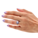 Honeycomb blue sapphire ring-handmade in 18-karat solid white gold featuring a medley of round brilliant white round brilliant diamonds and natural blue sapphires. Beautiful worn alone or stacked.