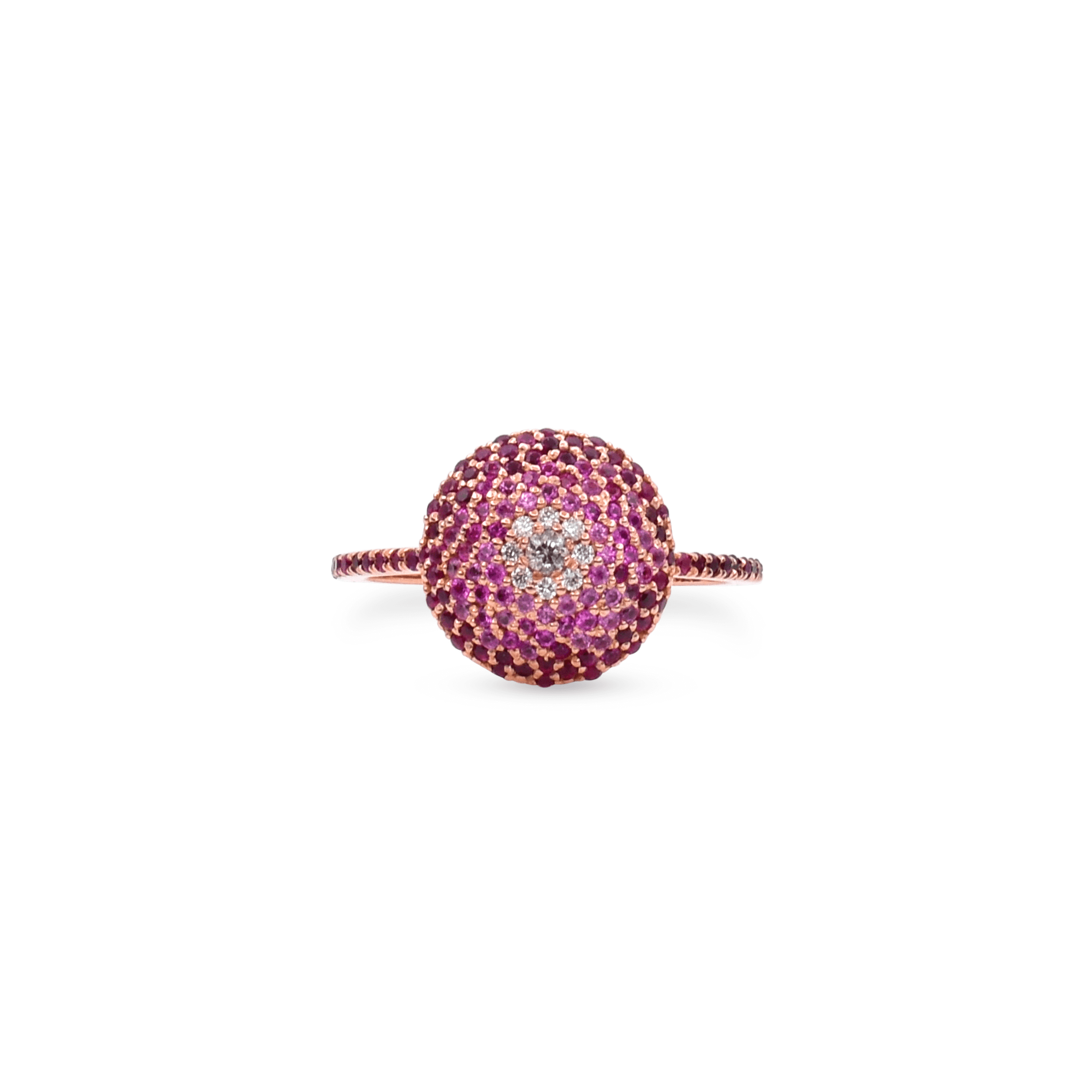 Honeycomb Ring - Handmade in 18-karat solid amber gold featuring a medley one hundred and forty on Burmese round brilliant cut rubies and round brilliant diamonds featuring our signature RED GOLD® collection, may be stacked