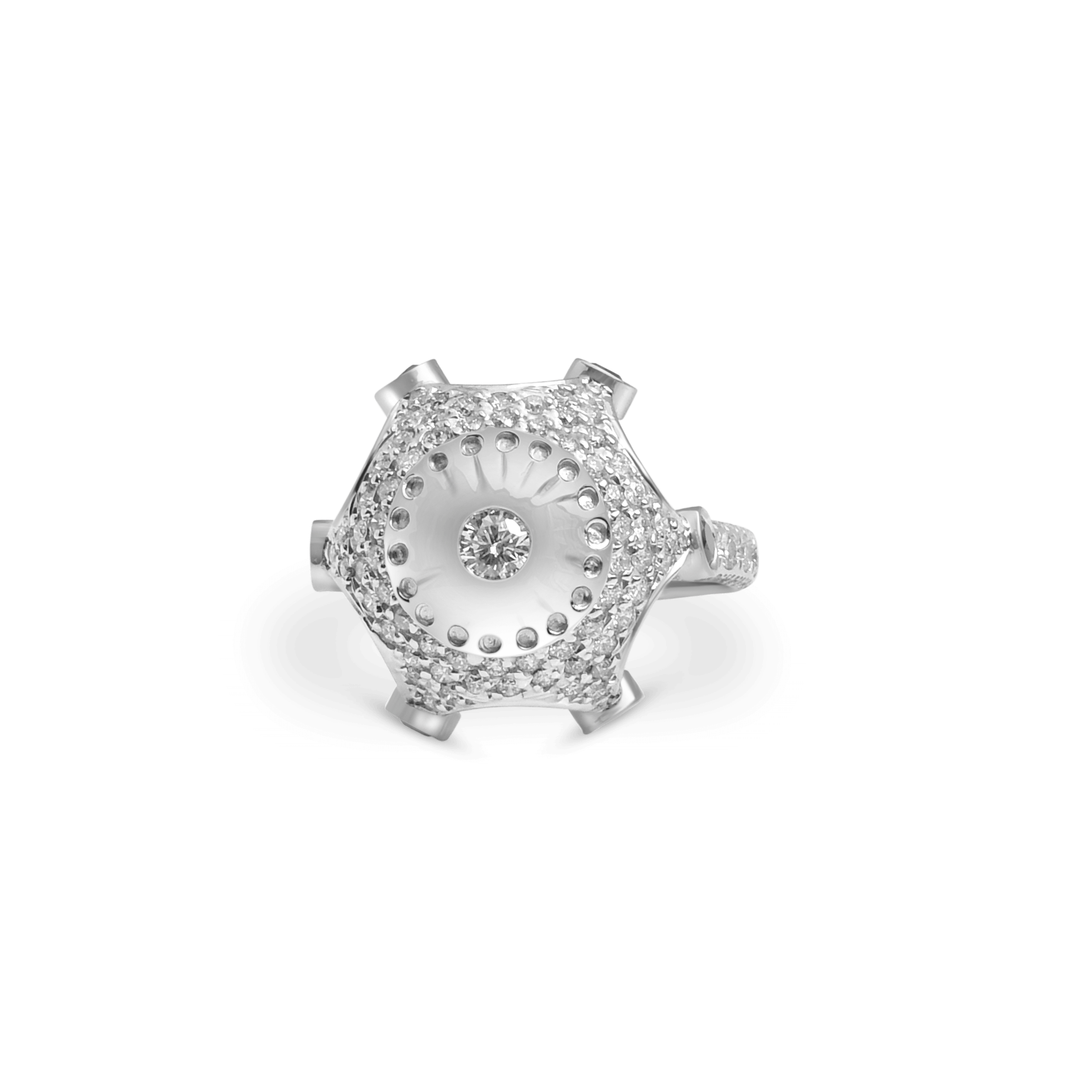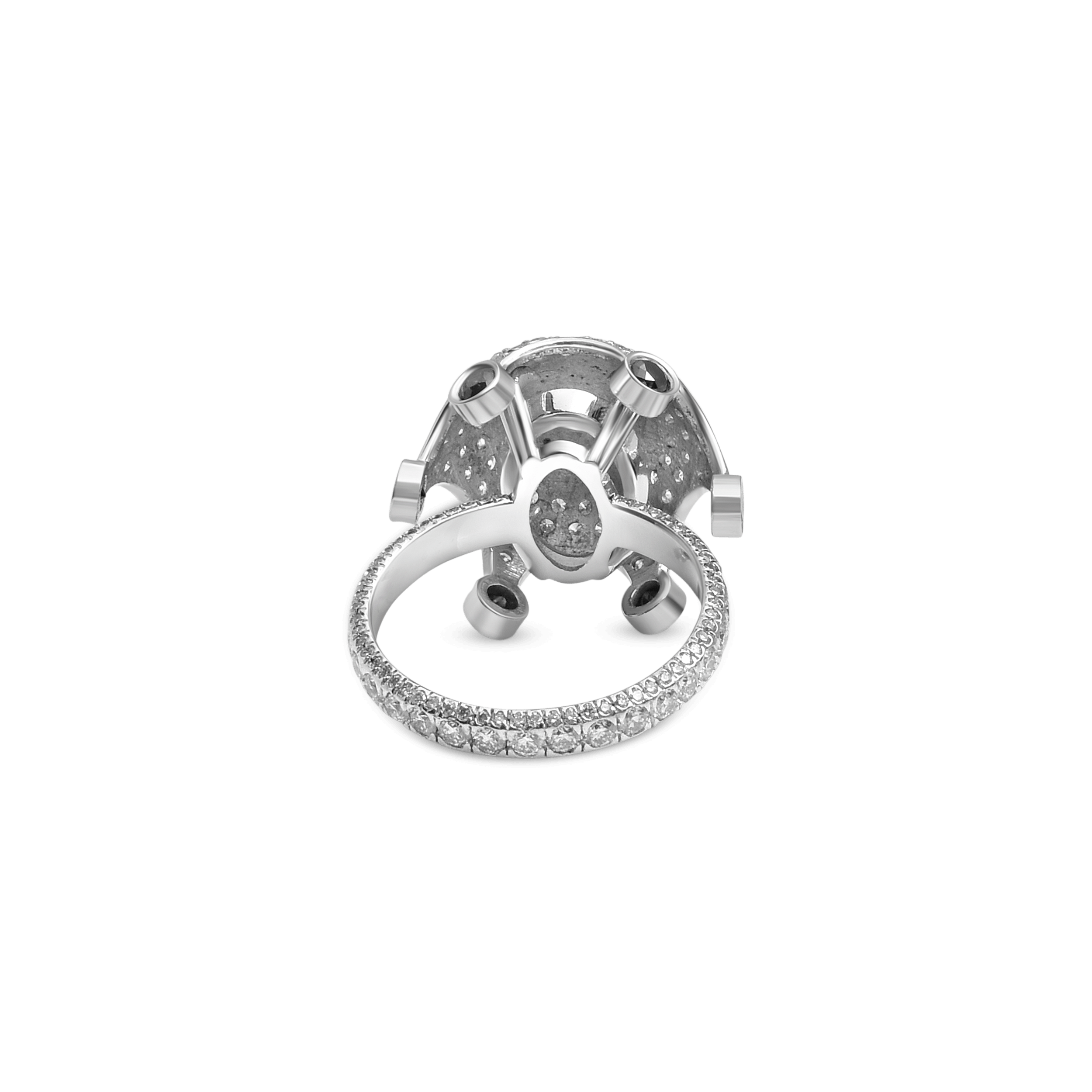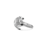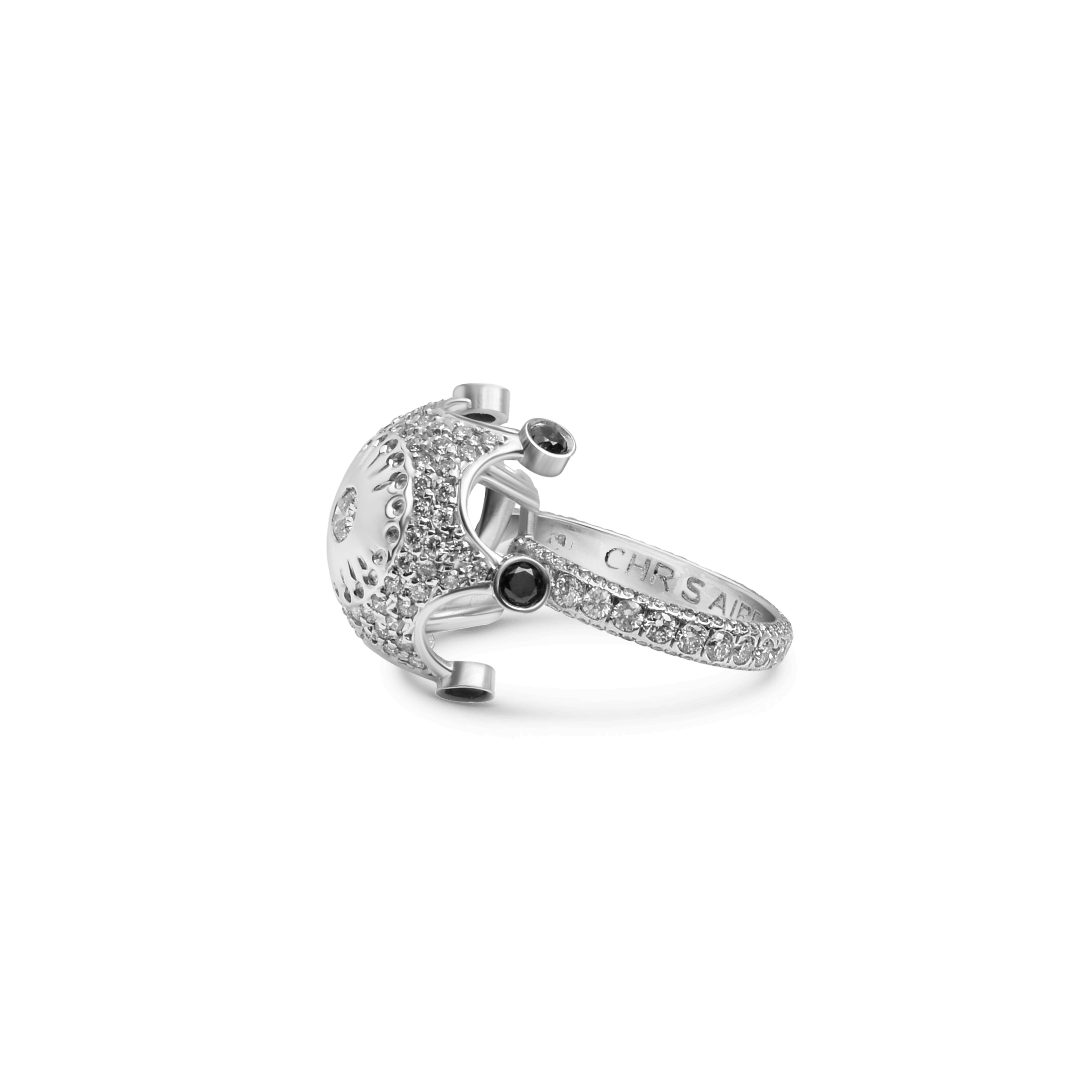 The Gifted Ring embodies the appreciation of grace. It is hand- crafted in platinum and embellished in ideal cut round brilliant diamonds of VVS1- VS1 clarity D-F colorless diamonds and accented with burnished set black round diamonds