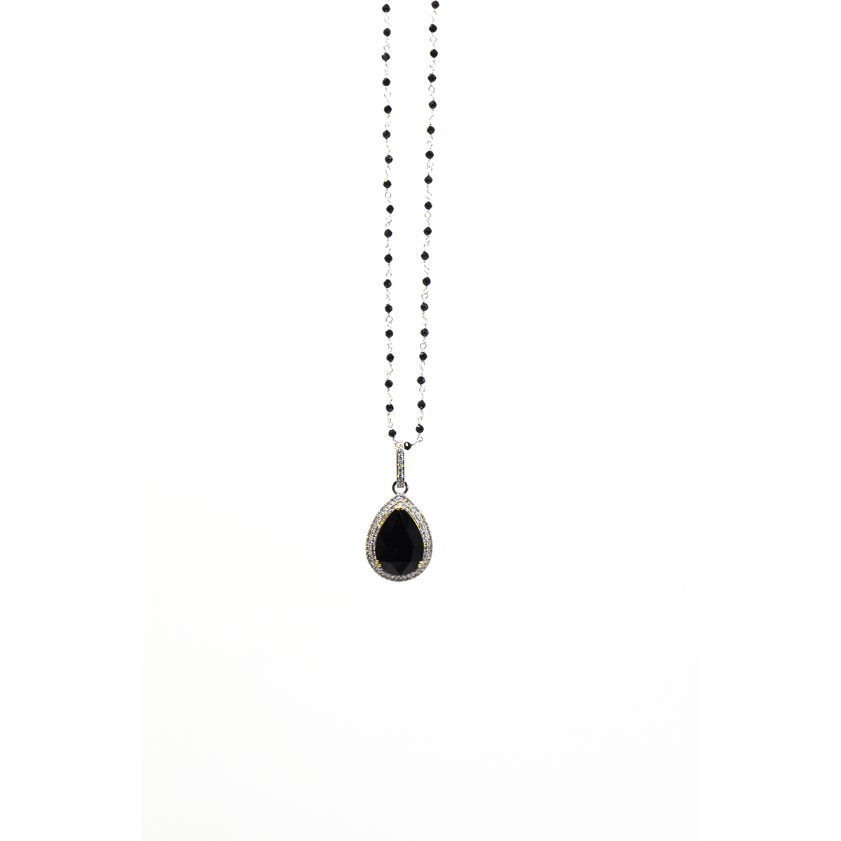 Gershon Necklace Created in 750 white and yellow gold featuring custom-cut faceted pear-shaped black onyx framed by with rows of round brilliant micro pave set diamonds.